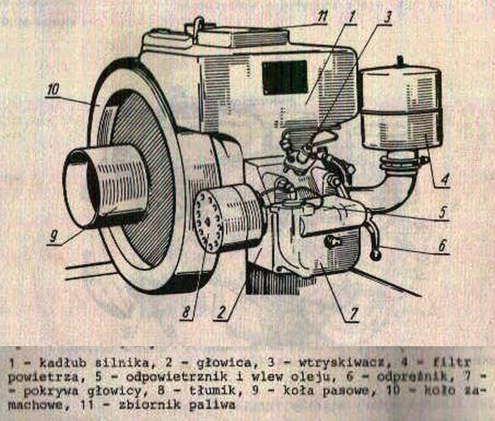 | Kierunek obrotów (patrząc od koła zamachowego) | prawy (zgodny z ruchem wskazówek zegara) | |